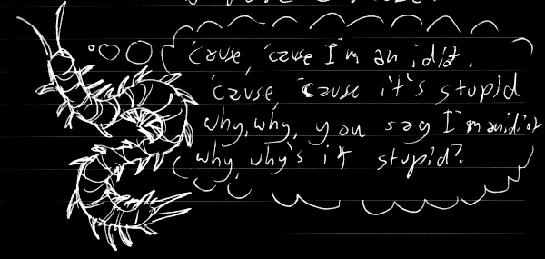 another one by someone else. i intended on scanning this for a long, long time... i was so drunk that, for the first time in my life, i puked everywhere. i barely managed to write the word cute to annotate this person's drawing.